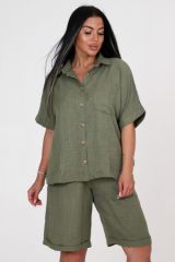 Ткань: Лен Состав: 80% хб,15% п/э, 5% лавсан Костюм летний женский из льна представляет собой комплект - шорты и рубашка с коротким рукавом, который станет отличным дополнением Вашего гардероба. Данная модель выполнена из смесового льна. Благодаря добавке полиэстера, льняные ткани меньше мнутся ,быстро сохнут и не деформируются при стирке. Лавсан отличается одной очень примечательной особенностью – придаёт ткани повышенную износостойкость ,что позволит сохранить первоначальный вид изделия не на один сезон. Приобретая данный летний женский костюм, вы получаете не только полноценный образ, но и два отдельных элемента одежды. Рубашка отлично подойдет как к льняным или хлопковым брюкам и любым джинсам ,а шорты замечательно гармонируют с легкими блузами, спортивными и классическими топами ,всеми моделями и видами футболок. Внимание: цвет на фото может не соответствовать точному цвету изделия и зависит от цветопередачи Вашего устройства! При уходе за костюмом ,пожалуйста ,следуйте инструкции на ярлычке. ЖЕЛАЕМ ВАМ КРАСИВЫХ, ПРАКТИЧНЫХ И НУЖНЫХ ПОКУПОК! Коллектив магазина ТВОЙ KAPRIZ.