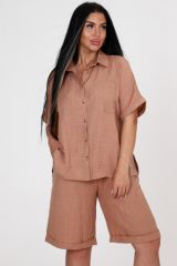 Ткань: Лен Состав: 80% хб,15% п/э, 5% лавсан. Костюм летний женский из льна представляет собой комплект - шорты и рубашка с коротким рукавом, который станет отличным дополнением Вашего гардероба. Данная модель выполнена из смесового льна. Благодаря добавке полиэстера, льняные ткани меньше мнутся ,быстро сохнут и не деформируются при стирке. Лавсан отличается одной очень примечательной особенностью – придаёт ткани повышенную износостойкость ,что позволит сохранить первоначальный вид изделия не на один сезон. Приобретая данный летний женский костюм, вы получаете не только полноценный образ, но и два отдельных элемента одежды. Рубашка отлично подойдет как к льняным или хлопковым брюкам и любым джинсам ,а шорты замечательно гармонируют с легкими блузами, спортивными и классическими топами ,всеми моделями и видами футболок. Внимание: цвет на фото может не соответствовать точному цвету изделия и зависит от цветопередачи Вашего устройства! При уходе за костюмом ,пожалуйста ,следуйте инструкции на ярлычке. ЖЕЛАЕМ ВАМ КРАСИВЫХ, ПРАКТИЧНЫХ И НУЖНЫХ ПОКУПОК! Коллектив магазина ТВОЙ KAPRIZ.