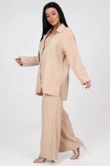 Костюм летний женский из льна представляет собой комплект -брюки и рубашка с длинным рукавом, который станет отличным дополнением Вашего гардероба. Данная модель выполнена из смесового льна. Благодаря добавке полиэстера, льняные ткани меньше мнутся ,быстро сохнут и не деформируются при стирке. Лавсан отличается одной очень примечательной особенностью – придаёт ткани повышенную износостойкость ,что позволит сохранить первоначальный вид изделия не на один сезон. Приобретая данный летний женский костюм, вы получаете не только полноценный образ, но и два отдельных элемента одежды. Рубашка отлично подойдет как к льняным или хлопковым брюкам и любым джинсам ,а брюки замечательно гармонируют с легкими блузами, спортивными и классическими топами ,всеми моделями и видами футболок.