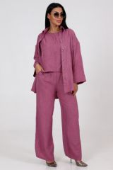Костюм летний женский тройка(топ+рубашка+брюки) из льна представляет собой комплект -брюки и рубашка с длинным рукавом, который станет отличным дополнением Вашего гардероба. Данная модель выполнена из смесового льна. Благодаря добавке полиэстера, льняные ткани меньше мнутся ,быстро сохнут и не деформируются при стирке. Лавсан отличается одной очень примечательной особенностью – придаёт ткани повышенную износостойкость ,что позволит сохранить первоначальный вид изделия не на один сезон. Приобретая данный летний женский костюм, вы получаете не только полноценный образ, но и два отдельных элемента одежды. Рубашка отлично подойдет как к льняным или хлопковым брюкам и любым джинсам ,а брюки замечательно гармонируют с легкими блузами, спортивными и классическими топами ,всеми моделями и видами футболок.