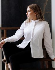Классическая блузка полуприлегающего силуэта с красивой потайной застежкой. Цвет белый. Сорочечная ткань ,55% хлопок, 45%