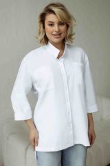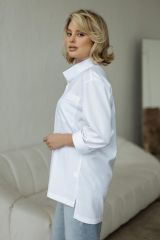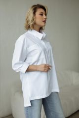 Стильная рубашка в стиле оверсайз. Широкая декоративная подгибка по низу, удлиненная спинка, накладные карманы, выразительные стойка и манжета рукава, выделяют эту свободную рубашку . Состав: 65% хлопок, 32% ПЭ, 3% спандекс.