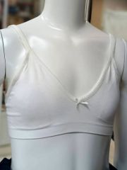 Состав: 92% полиамид 8% спандекс съемная чашка. Этот бесшовный бюстгальтер с V-образным вырезом можно надевать под тонкую одежду из стретчевых тканей, обтягивающее платье или блузку. Никакие швы не будут проступать из-под ткани одежды. Отличие бюстгальтеров с мягкой чашкой - их естественность в подчеркивании формы груди.  Бесшовные бюстгальтеры уже давно завоевали любовь и преданность хрупких женщин и девочек подростков, ценящих прежде всего комфорт. Поклонницами такого белья стали подростки, в школу под блузку, заниматься  спортом и другими активными физическими упражнениями. Такая популярность бесшовного белья полностью обоснована их универсальностью – можно пойти в гости, в школу, на занятия фитнесом и везде чувствовать себя свободно и удобно. Размер не более 40 На обхват груди не более 65