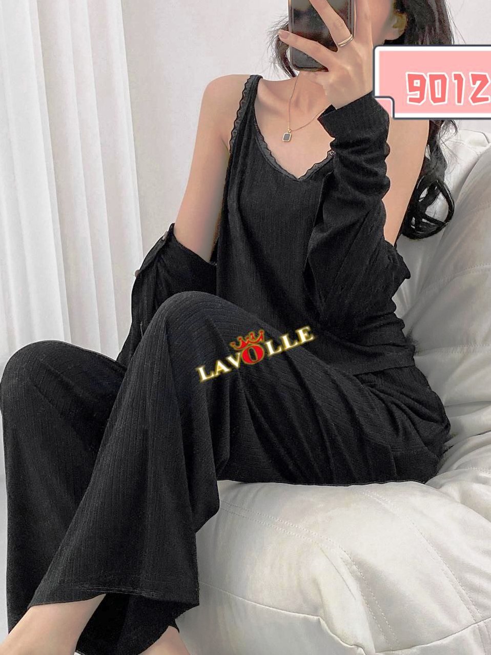 Домашний костюм ТРОЙКА с брюками AIPINGNA 9012 (черный)