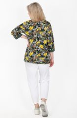 Женская футболка из набивного трикотажного полотна с фигурной планкой по горловине из однотонной ткани, дополненной декоративными пуговицами. Отделка карманов и манжеты рукавов выполнены из той же ткани, что и горловина. Футболка отлично садится на любую женскую фигуру благодаря свободному покрою и широкому размерному ряду. Цвет на фото не соответствует!!! Состав100% Хлопок