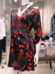Стильный халат из цветного шелка понравится любительницам ретро-романтики. Дизайн модели отчасти перекликается с мотивами шестидесятых. Лаконичный силуэт с завышенной талией, укороченная линия верха и яркие цветочные принты формируют один из самых долгоиграющих трендов молодежного стиля, который подходит не только юным девушкам, но и активным женщинам старшего возраста, которые не прельщает роль почтенной матроны. Самой оригинальной деталью кроя выступают открытые рукава, демонстрирующие тонкие запястья. Озорные бантики из тесьмы в вырезе декольте и на манжетах придают образу живость и непосредственность Длина -84 см.