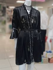 Халат "Шелк Армани" мод 936 (черный цветы)