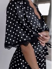 Халат домашний с кружевом Mar Bin 1111 (черный в горошек)