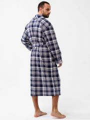 Пижама мужская состоит из футболки и брюк. Футболка с длинным втачным рукавом. Круглый вырез горловины на полочке и имитация планок окантованы бейкой с застежкой на петли и пуговицы. На полочке нагрудный карман. Футболка выполнена из гладкокрашеного полотна. Брюки прямого силуэта с боковыми карманами в швах с цельнокроеным поясом на резинке. Состав: Хлопок 100% Ткань: Кулирное полотно Цвет искажен