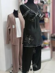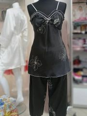Комплект Топ+бриджи "Шелк Армани" мод 65-66 (черные-цветы)
