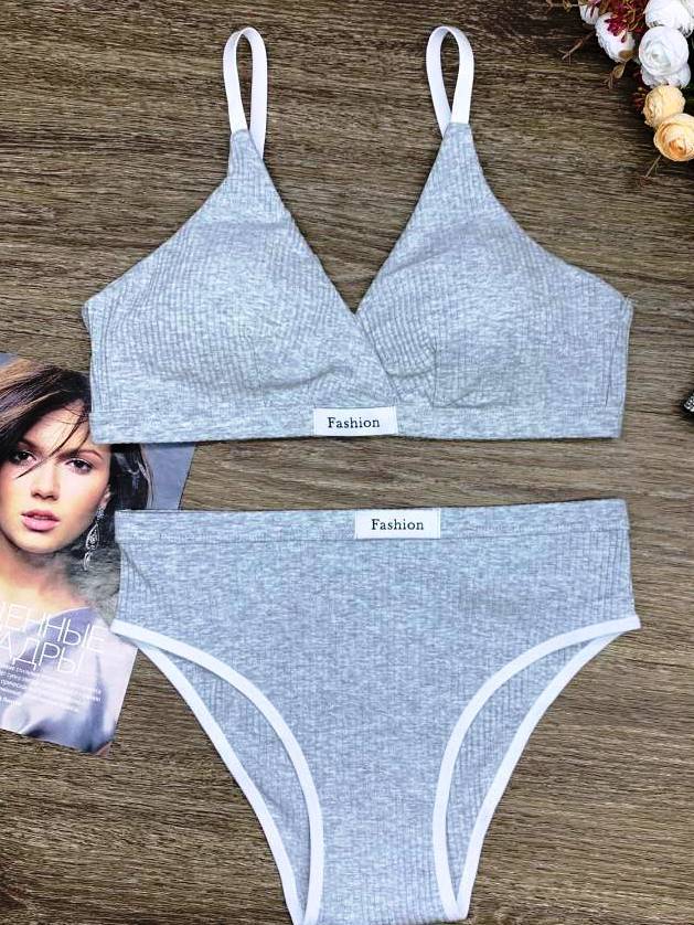 Комплект   женского нижнего белья: бюстгальтер-топ и трусы. Лифчик без застежки Материал по характеристикам хлопок, полиамид