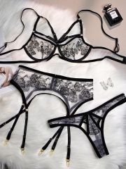 размер лифа: 80В Размер трусиков: L Трусики - стринги Пояс для чулок Очаровательный набор нижнего белья для женщин — идеальный выбор для тех, кто ценит комфорт, красоту и стиль. Насладитесь нежностью и романтикой в нашем удобном кружевном белье, созданном для подчеркивания вашей естественной красоты. Эротический комплект включает в себя бюстгальтер и трусики женские, доступные в различных размерах, чтобы подойти идеально под любую фигуру. Комбинация сетки и кружева с сеточкой и необычным рисунком создает неповторимый образ, придающий вам нежный и романтический вид. В комплекте стринги бразильяна, добавляющие сексуальности и изысканности вашему образу. Идеальный выбор цвета для особых моментов — будь то свадебная ночь, 18+ интим свидание с чулками, романтический вечер или фотосессия в платье с вырезом для беременных. Косточки с чашечками на лифчике обеспечивают дополнительную поддержку груди, а лиф топ без пуш - ап выгодно подчеркнет естественную форму и секси красоту женской груди, добавляя женственности вашему образу. Полупрозрачный черный материал бандо придает бюсту загадочность и чувственность вашему облику. Ощутите себя уверенно, красиво и женственно в нашем комплекте нижнего белья для женщин, который сочетает в себе стиль, качество и удобство. Позвольте себе окунуться в мир украшений, роскоши и нежности с нашими элегантными моделями интимного и эротического белья и одежды женской. Сексуальное, яркое, открытое, красивое белье натонких бретелях плюс прозрачные детали делают летний комплект больших размеров базовым. Женский комплект для взрослых включает женские трусы с высокой посадкой, обеспечивающие комфорт и поддержку в повседневной носке и лиф которые обеспечивают комфорт бесшовного белья и подходят для ежедневной носки, в том числе и для подростков. Создай свой идеальный образ с майкой и джинсами, или телесными брюками с открытой талией этот комплект нижнего белья обеспечит комфорт и удобство. Будет отличным подарком девушке, любимой жене или подруге.