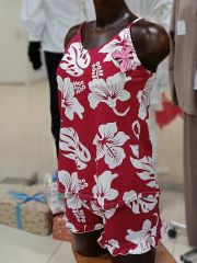 Пижама состоит из топа и шорт. Топ наи тонких бретелях, по полочке кружево. Шорты короткие, пояс на резинке.
