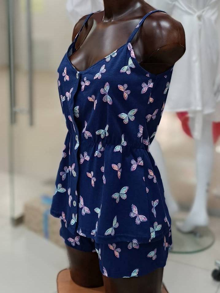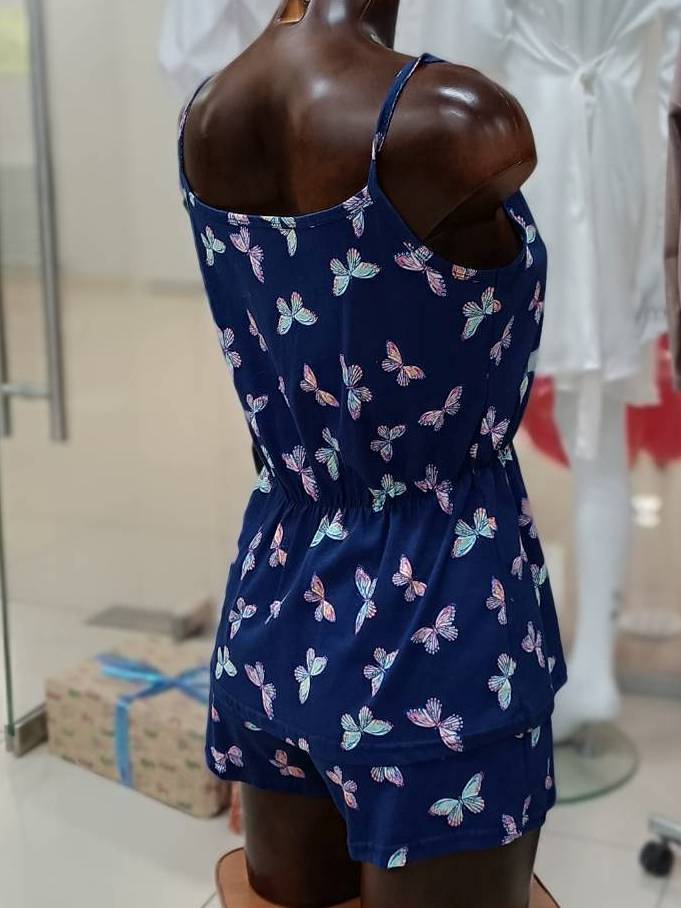 Пижама состоит из топа и шорт. Топ на тонких бретелях,. Шорты короткие.