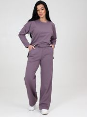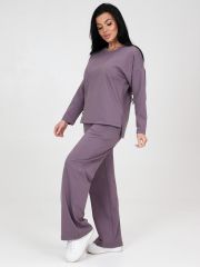 Стильный женский костюм подойдет для женщин всех возрастов, потому что любая женщина ценит привлекательный внешний вид и комфорт, особенно, когда эти качества сочетаются в одном костюме. Спортивный костюм женский для дома и отдыха Oversize свободного кроя состоит из свитшота и брюк палаццо. Удобная кофта со спущенной плечевой линией, удлиненной спинкой и боковыми разрезами. Широкие свободные брюки-палаццо с высокой талией, эластичным поясом и боковыми карманами. Прогулочный костюм из футера - плотного материала c гладкой и приятной на ощупь наружной поверхностью. Брюки палаццо подходят для любого типа фигуры, скрывают ее недостатки и подчеркивают достоинства. Прекрасно подойдет под лаконичный офисный стиль, для вечерних и повседневных образов, для прогулок и занятий спортом, а также в качестве костюма для дома. Брючный костюм женский не теряет форму после многочисленных стирок. Костюм не требовательный в уходе. Прекрасно впишется в базовый гардероб женщины.