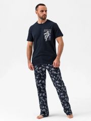 Костюм мужской (футболка + штаны) "Астронавт" Артикул: 2019-К (синий бархат)