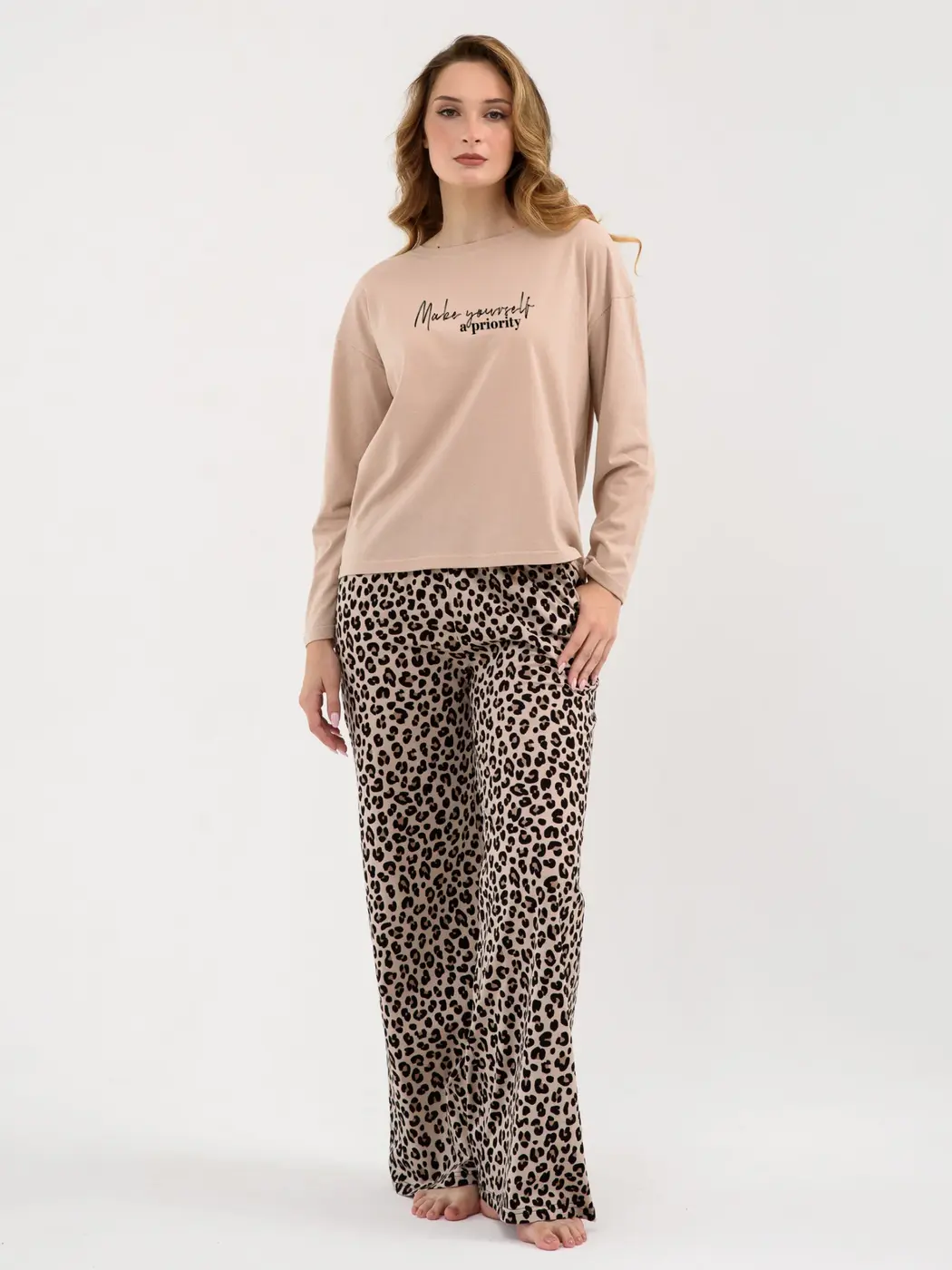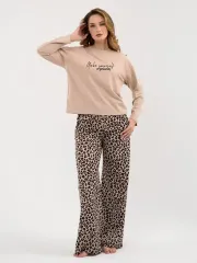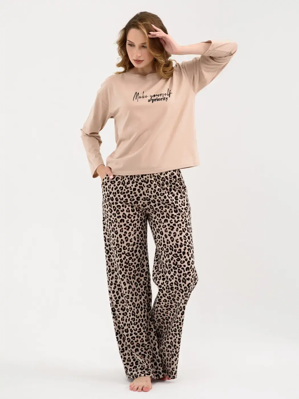 Костюм женский (лонгслив+брюки) "Энимал" Артикул: 2253-К (бежевый)