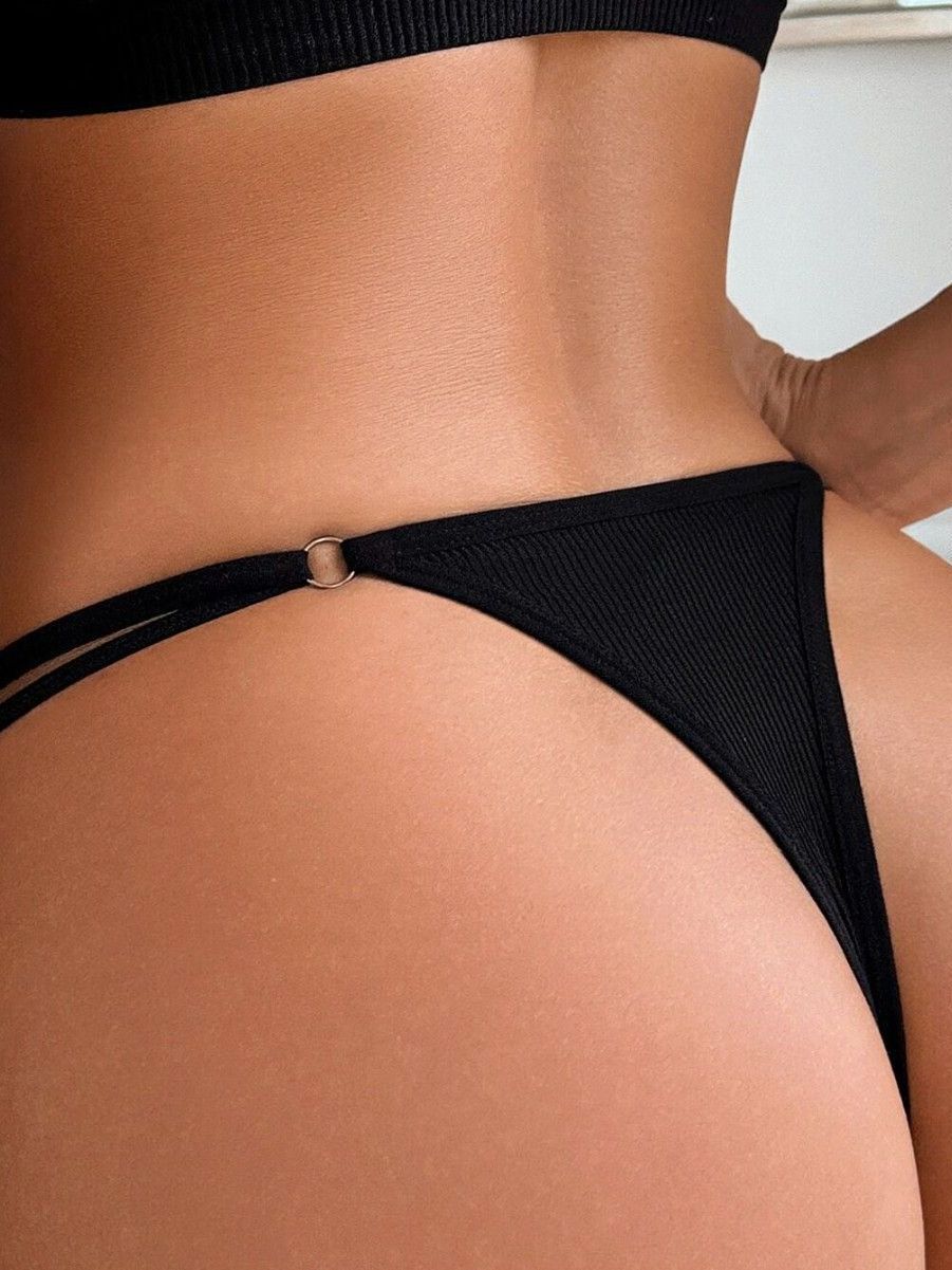 Кружевные трусики-стринги Amazon с низкой посадкой, бретели серебро (черные)