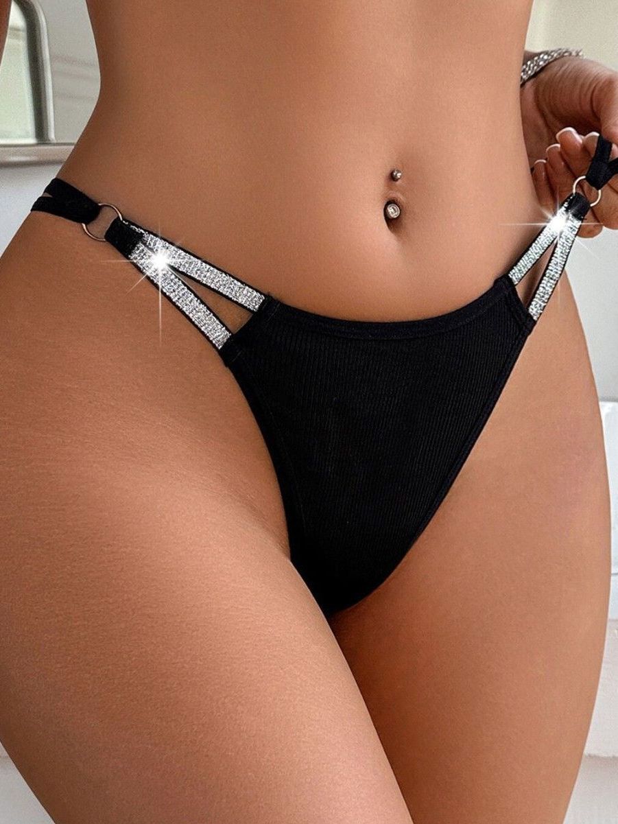 Кружевные трусики-стринги Amazon с низкой посадкой, бретели серебро (черные)