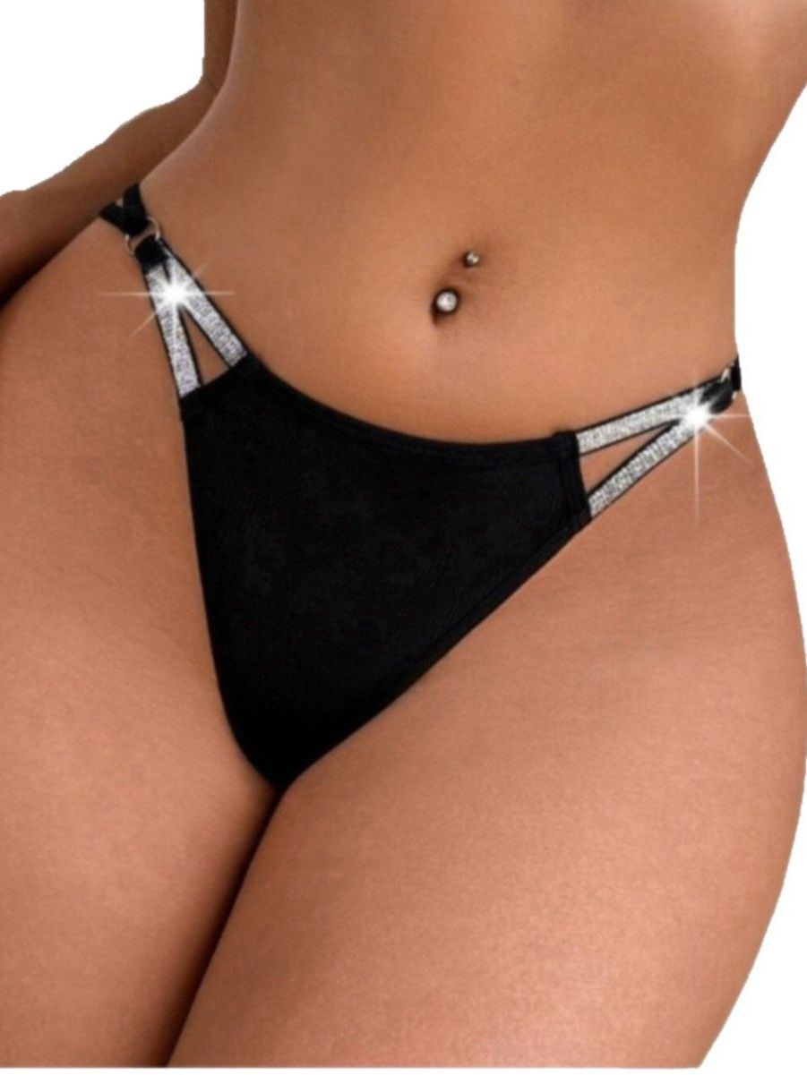 Кружевные трусики-стринги Amazon с низкой посадкой, бретели серебро (черные)
