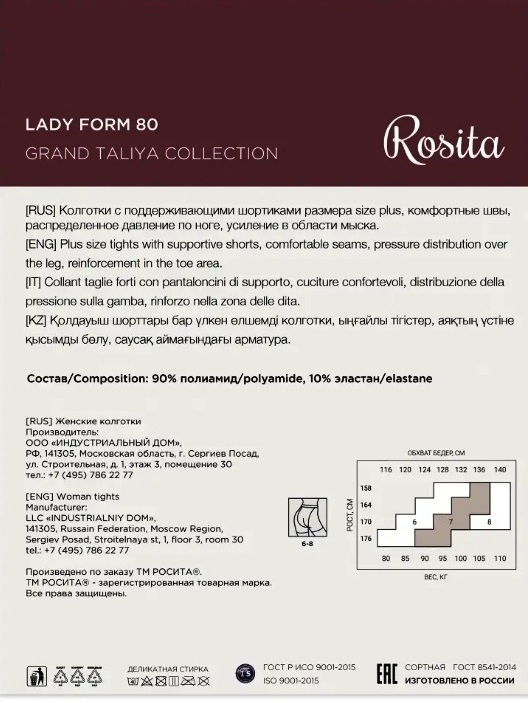 Основная информация Состав полиамид; эластан Цвет черный Дополнительная информация Плотность плетения 80 ден Особенности белья классическая модель Вид колготок/чулок классические Страна производства Россия Комплектация колготки -1 шт Описание Ищете идеальное решение для создания стильного образа и комфорта в повседневной жизни? Вы на верном пути! Наши колготки женские предлагают безупречное сочетание стиля и функциональности, что делает их незаменимым элементом гардероба. Изготовленные из высококачественных материалов, капроновые колготки обеспечивают легкость и воздухопроницаемость, позволяя вашей коже дышать в течение всего дня. Если вы ищете капроновые колготки, которые подчеркнут вашу индивидуальность, то эти колготки капроновые женские подойдут идеально. Они выпущены в универсальных черных оттенках, которые легко комбинируются с любыми нарядами. Не упустите шанс добавить в свой арсенал модные колготки черные, идеально подходящие как для офиса, так и для вечерних выходов. Черные колготки являются классикой, и они будут отличным дополнением к любому образу. Для более полных дам у нас также есть колготки больших размеров женские, которые обеспечивают комфорт и уверенность. Для тех, кто ищет оптимальный выбор для осенне-зимнего сезона, колготки 80 ден женские подарят тепло и уют даже в самые холодные дни. Плотные, матовые колготки. Шортики создают поддерживающий эффект. Классическая посадка на талии, комфортный шов по торсу, не сдавливающий борт. Поддержите свой стиль, выбирая черные капроновые колготки, которые визуально удлинят ноги и придадут им привлекательность. Не забывайте о высоком качестве наших капронок черных. Они не только удобны, но и долговечны, что делает их отличным выбором для активных леди. Выбирая колготы женские, вы выбираете уверенность и элегантность.