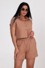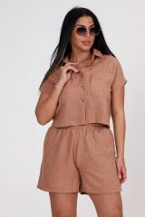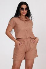 Ткань: Лен Состав: 80% хб,15% п/э, 5% лавсан. Костюм летний женский из льна представляет собой комплект - шорты и рубашка с коротким рукавом, который станет отличным дополнением Вашего гардероба. Данная модель выполнена из смесового льна. Благодаря добавке полиэстера, льняные ткани меньше мнутся ,быстро сохнут и не деформируются при стирке. Лавсан отличается одной очень примечательной особенностью – придаёт ткани повышенную износостойкость ,что позволит сохранить первоначальный вид изделия не на один сезон. Приобретая данный летний женский костюм, вы получаете не только полноценный образ, но и два отдельных элемента одежды. Рубашка отлично подойдет как к льняным или хлопковым брюкам и любым джинсам ,а шорты замечательно гармонируют с легкими блузами, спортивными и классическими топами ,всеми моделями и видами футболок. Внимание: цвет на фото может не соответствовать точному цвету изделия и зависит от цветопередачи Вашего устройства! При уходе за костюмом ,пожалуйста ,следуйте инструкции на ярлычке. ЖЕЛАЕМ ВАМ КРАСИВЫХ, ПРАКТИЧНЫХ И НУЖНЫХ ПОКУПОК! Коллектив магазина ТВОЙ KAPRIZ.