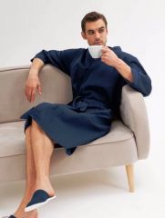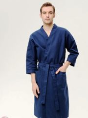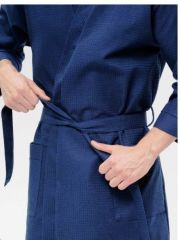 Мужской укороченный вафельный халат с планкой темно-синий В-05 (28)