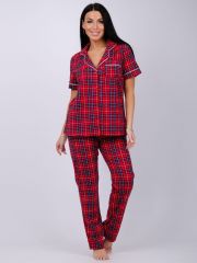 Пижама "Модерн" красная клетка, трикотаж 30003 рубашка (к/р) и брюки