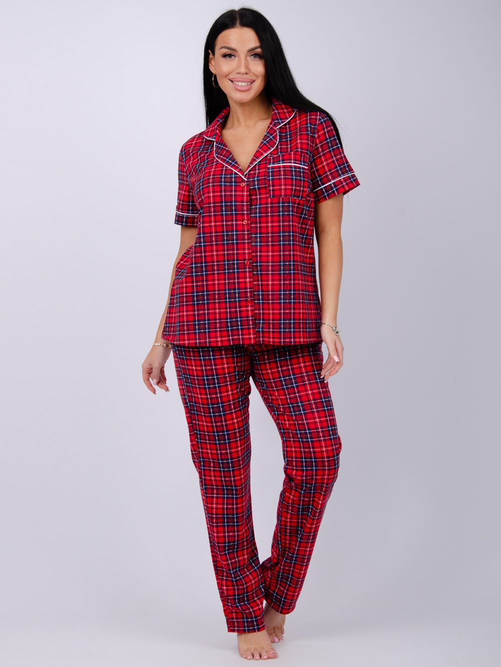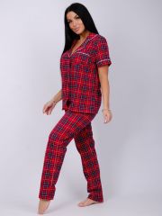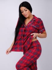 Пижама "Модерн" красная клетка, трикотаж 30003 рубашка (к/р) и брюки