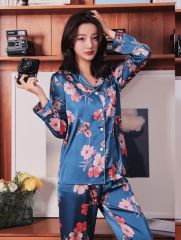 Пижама "ОКСФОРД" КОРОТКИЙ РУКАВ! шелк, синяя-цветы