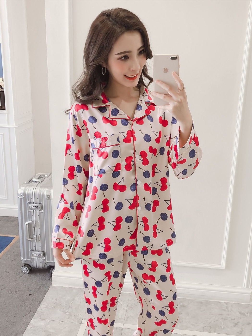 Классическая шелковистая пижама из атласной ткани, с брюками и рубашкой с длинным рукавом. Уютная и комфортная. Рубашка с отделкой контрастным кантом по борту, накладным карманом и костюмным воротником, застегивается на пуговицы. Брюки прямые, свободные на высокой посадке. Яркий принт всегда поднимет настроение!