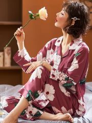 Пижама "ОКСФОРД" шелк, бордо-цветы
