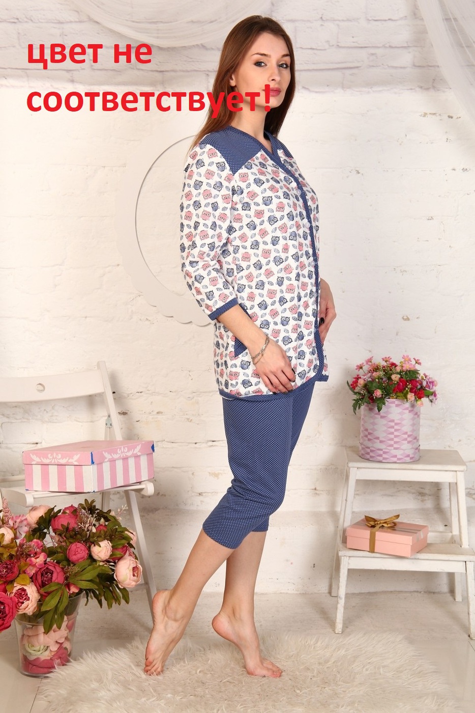 Пижама женская с бриджами и рукавом 3/4 подойдет как для дома и сна, так и для прогулок на улице. Имеет застежку до низа на шесть пуговиц. Благодаря широкому размерному ряду пижама подойдет девушкам и женщинам любого возраста и комплекции. Пижама женская станет отличным подарком на новый год, день рождения, 14 февраля или 8 марта. Порадуйте себя и своих близких приятным презентом.