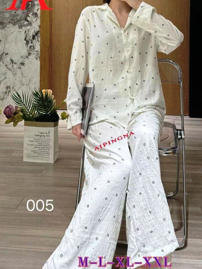 Пижама хлопок с брюками AIPINGNA 005(молочный в цветочки)