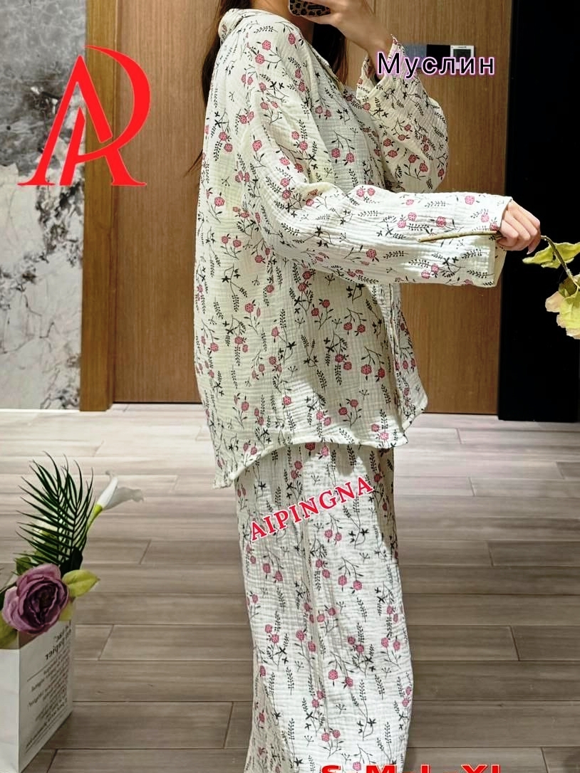 Описание 100% Муслиновая ткань. Муслиновая ткань обладает уникальными воздухопроницаемыми свойствами, что позволяет вашей коже дышать и оставаться свежей даже в самые жаркие летние ночи. Этот натуральный и экологически чистый материал обеспечивает мягкое прикосновение к коже и позволяет ей дышать. Наша муслиновая пижама со штанами выполнена из муслина премильного качества. Пижама со штанами не скатывается и не меняет цвет после стирки. Эта невероятно мягкая и уютная женская пижама для женщин, девушек и девочек подростков выполнена из высококачественной муслиновой ткани, обеспечивая Вам идеальную комбинацию комфорта, тепла и нежности на протяжении всей ночи. Уход за пижамой с цветочками. Стирка. Стирать муслин в прохладной воде при температуре 30 ⁰С. Не используйте отбеливатели и концентрированные моющие средства. Стирать отдельно белые и цветные вещи с использованием мягких моющих средств. Полоскать без использования крахмала. Сушить в расправленном виде на горизонтальной поверхности вдали от источников тепла и солнечных лучей. Гладить лучше на щадящем режиме или пользоваться отпаривателем. Вдохновленный легкостью и свежестью муслина, наша пижама из муслина является идеальным выбором для вашего сна. Пижама с цветочками это отличный подарок подруге, маме, коллеге, подарок на Новый Год, на 8 марта. Пижама y2k выполнена в стиле oysho ойшо. Женская хлопковая пижама хб со штанами и рубашкой не садится после стирки, не меняет цвет и не скатывается. Пижама женская больших размеров подойдет даже для беременных. Корейская пижама пропускает воздух и сохраняет тепло. Хлопок плотный и прочный, что гарантирует долговечность. Хлопковая пижама идеально подойдет как взрослым для дома, для роддома, так и подросткам. Летняя пижама из муслина это отличный выбор как для холодного, так и для теплого времени года. Домашний костюм в стиле оверсайз.