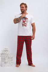 Ткань кулирка Состав Хлопок 100% Описание Стильный и модный набор для дома, который станет отличным выбором для мужчин. Этот комплект создан с учетом всех современных тенденций, обеспечивая комфорт и удобство повседневной носки. Трикотажный материал приятно ощущается на коже, благодаря чему костюм идеально подходит для отдыха и сна. Этот красивый пижамный комплект включает в себя уютную футболку и брюки. Мягкий трикотаж обеспечивает свободу движений и комфорт в любое время суток. Одежда выполнена в ярком стиле, чтобы вы чувствовали себя привлекательно даже дома. Особенным украшением комплекта является оригинальный новогодний принт, создающий милый и игривый образ. Праздничный комплект "двойка" можно легко использовать как повседневную одежду дома или в роддоме. Брюками здесь выступают стильные джоггеры, которые делают внешний вид современным и непринужденным. Мужской домашний костюм отлично подходит беременным женщинам благодаря свободному крою и мягкому материалу. Ивановские производители сделали акцент на высоком качестве тканей, что обеспечивает долговечность изделия без потери формы после многочисленных стирок. Костюм из хлопка покоряет своим лаконичным стилем: он подчеркивает естественную красоту хозяек благодаря простоте линий и одновременно яркости деталей. Этот брючный комплект — идеальный выбор для домашнего отдыха либо сна; он помогает расслабиться после долгого дня. Дизайн сочетает в себе элементы классики и трендов моды, поэтому пижама будет актуальна долгое время разным поколениям мужчин. Костюм с рисунком ёлочек для подростков из хлопка покоряет своим лаконичным стилем: он подчеркивает естественную красоту хозяев благодаря простоте линий и одновременно яркости деталей.