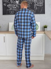 Состав: 100% хлопок Ткань: фланель Размер: 48-58 Расцветка как на фото. Фланелевая байковая мужская пижама со штанами  выполнена из 100% хлопка. Комплект состоит из рубашки с втачными рукавами, отложным воротником, двумя накладными карманами и брюк прямого покроя на резинке. Актуальный и практичный рисунок в клетку. Удобное лекало, не сковывает движений, приятная ткань- фланель. Не линяет после стирки. Большие размеры.