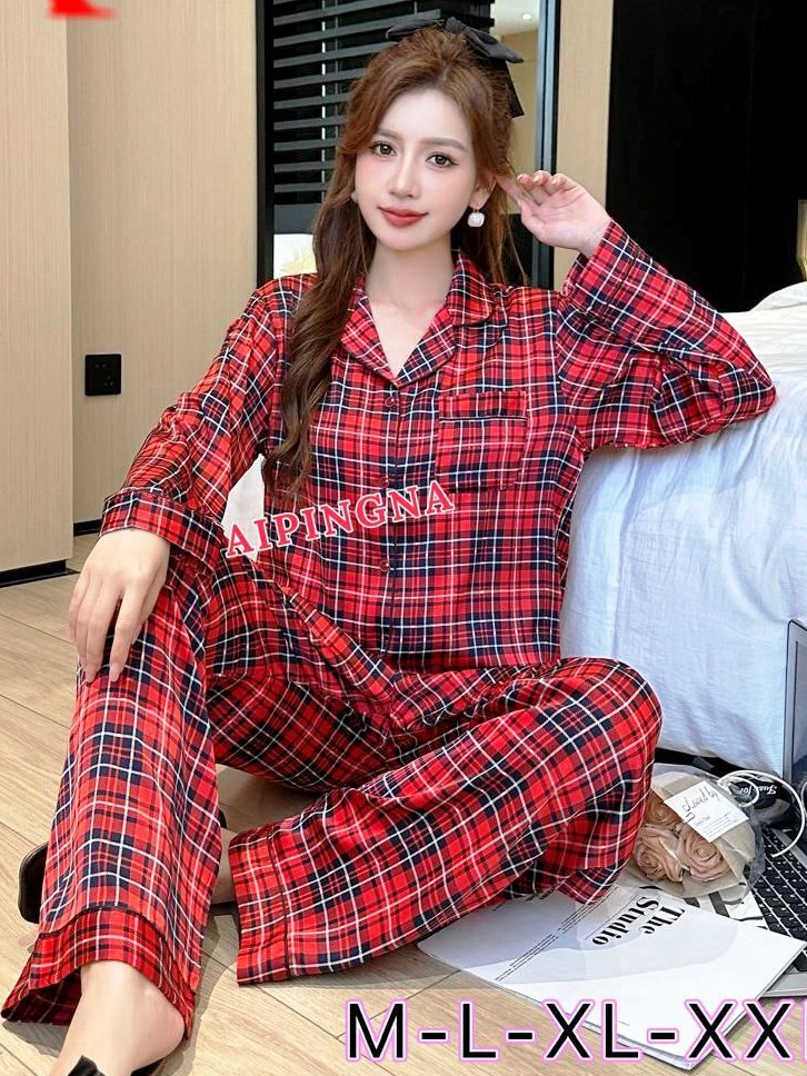 Пижама шелк с брюками AIPINGNA 5116 (красная клетка)