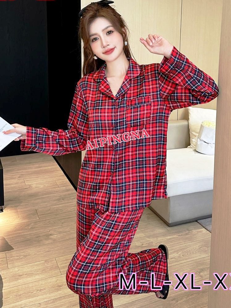 Пижама шелк с брюками AIPINGNA 5116 (красная клетка)