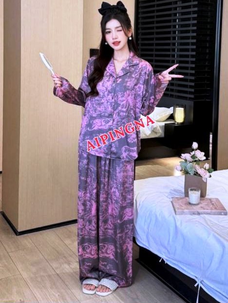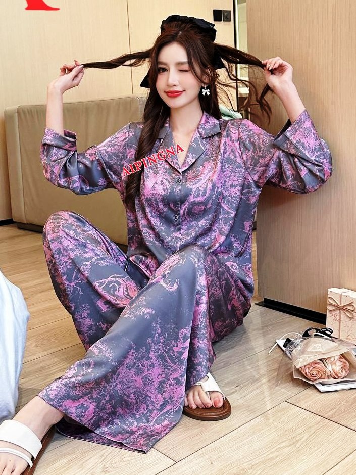 Пижама шелк с брюками AIPINGNA 5320 (мрамор серо-малиновый)