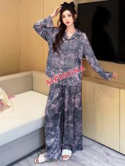 Пижама шелк с брюками AIPINGNA 5320 (мрамор серо-пудровый)