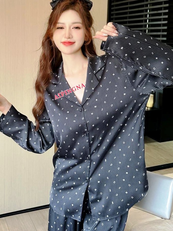 Пижама шелк с брюками AIPINGNA 5321(черная буквы)