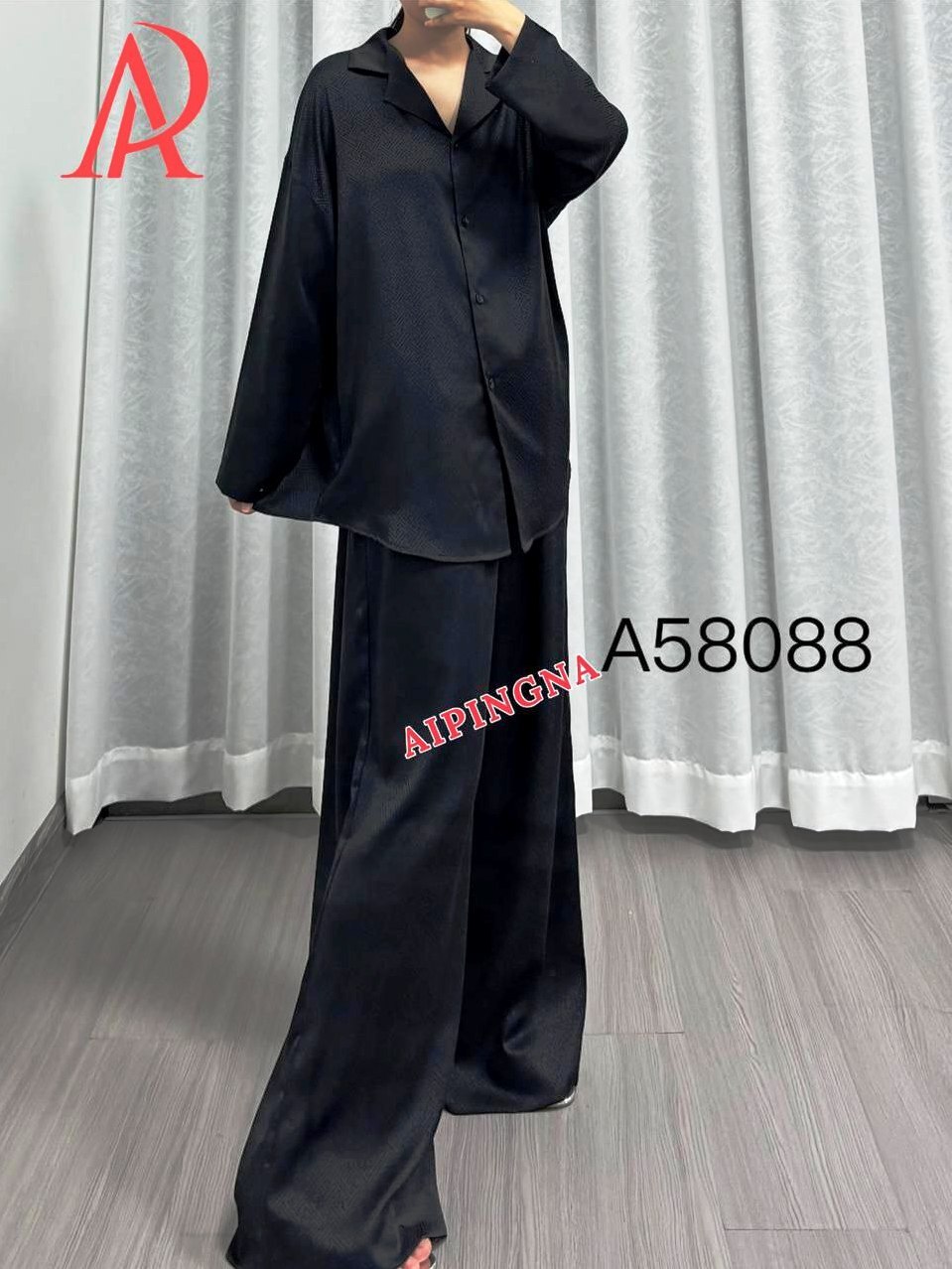 Пижама шелк с брюками AIPINGNA 58088 (черный)