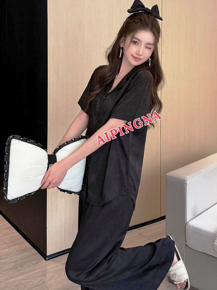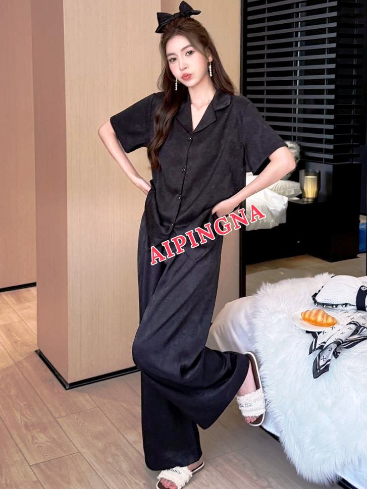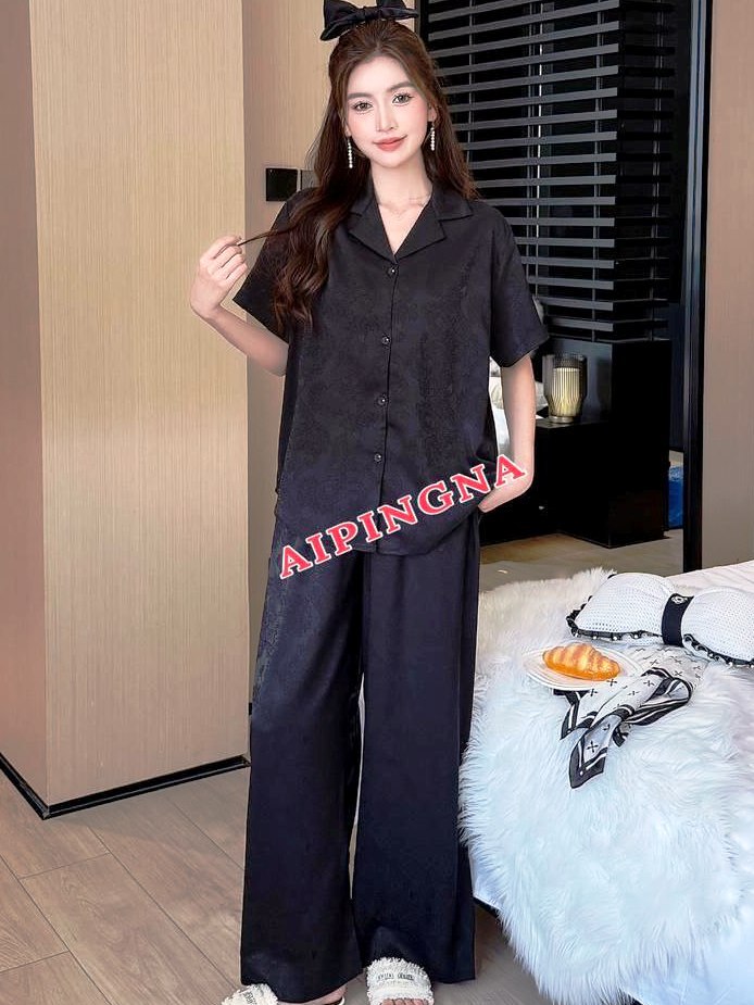Пижама шелк с брюками AIPINGNA 6210 (черный)