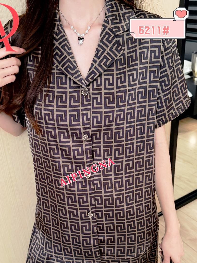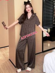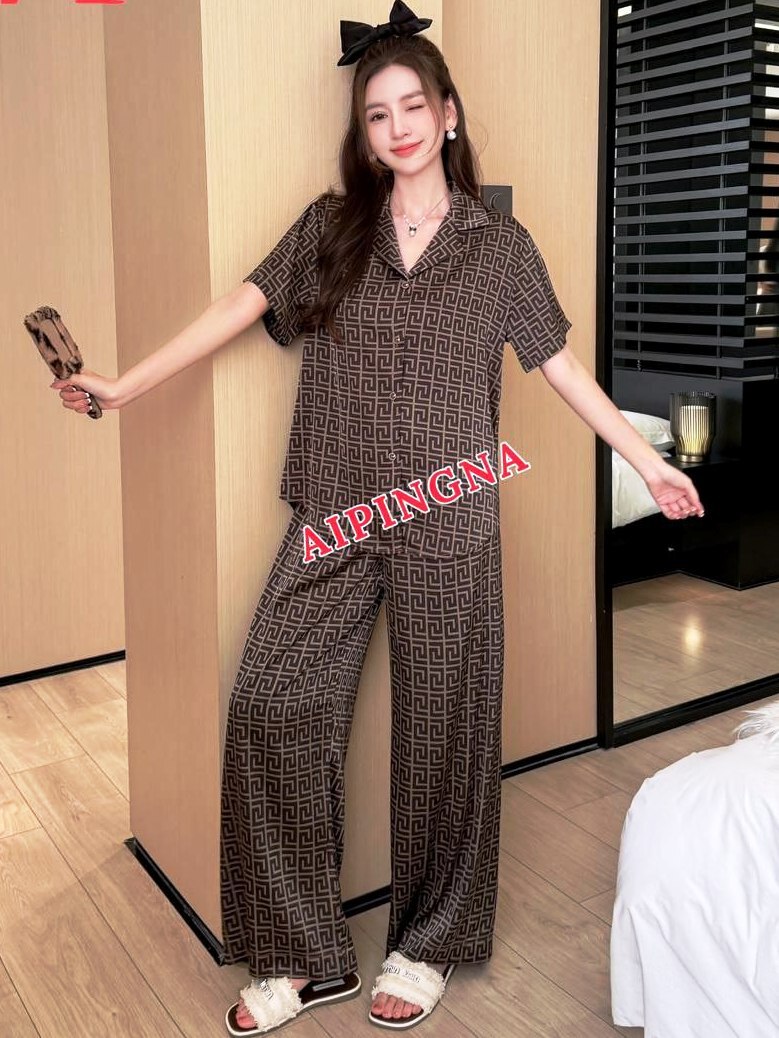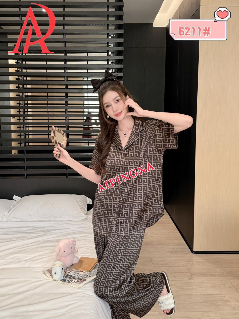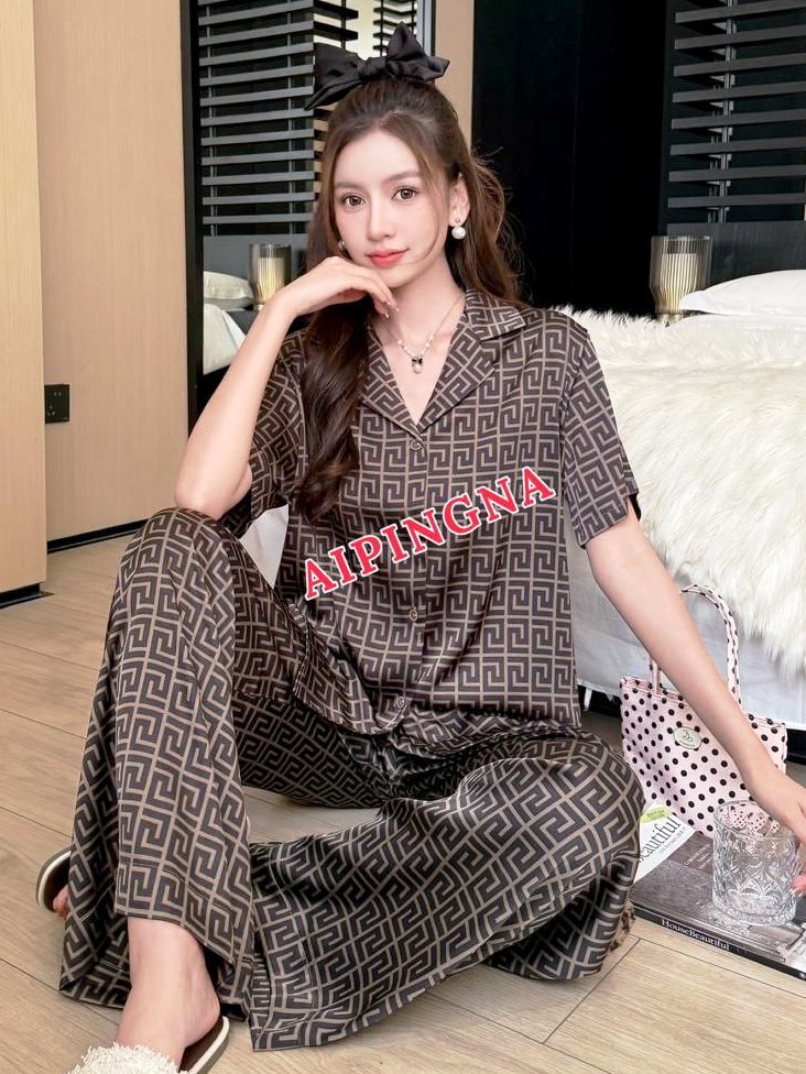 Пижама шелк с брюками AIPINGNA 6211 (коричневая геометрия)
