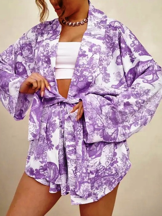 Пижама шелк с шортами AIPINGNA 38082 (мрамор фиолет)