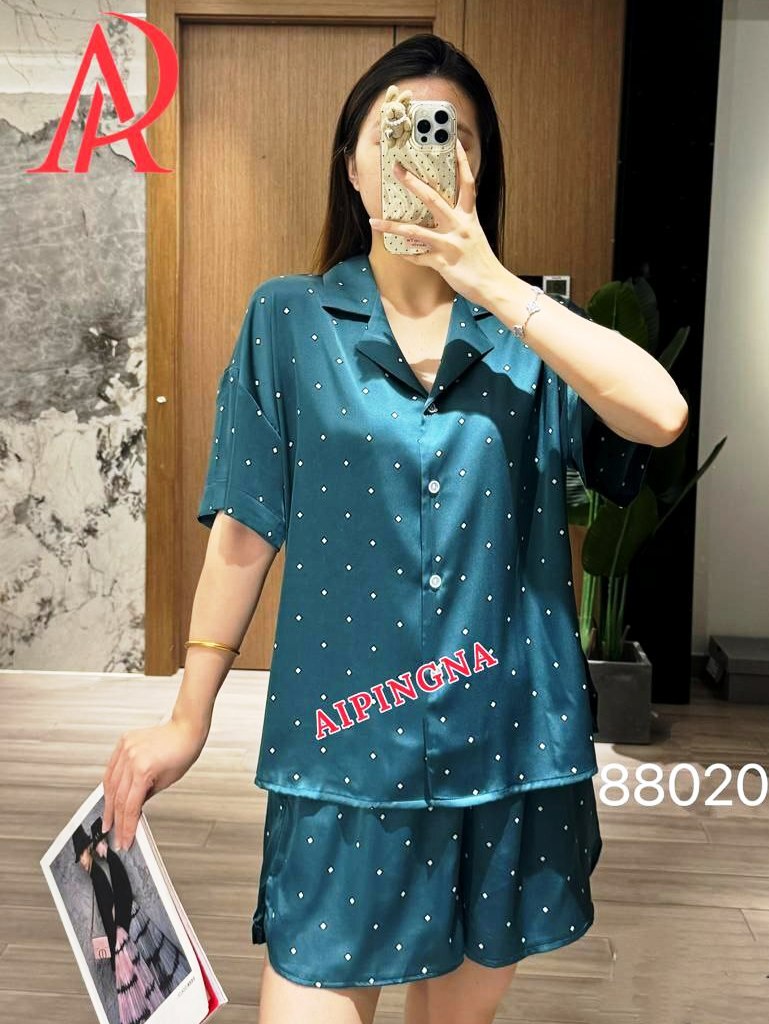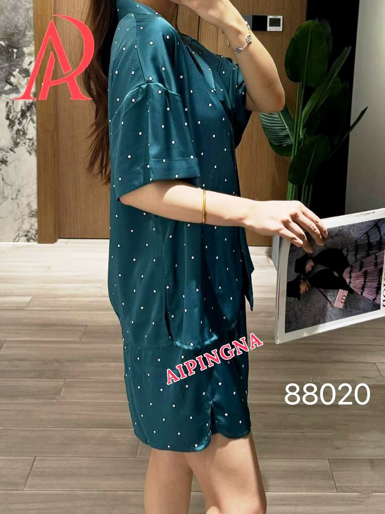 Пижама шелк с шортами AIPINGNA 88020 (зеленая ромбы)