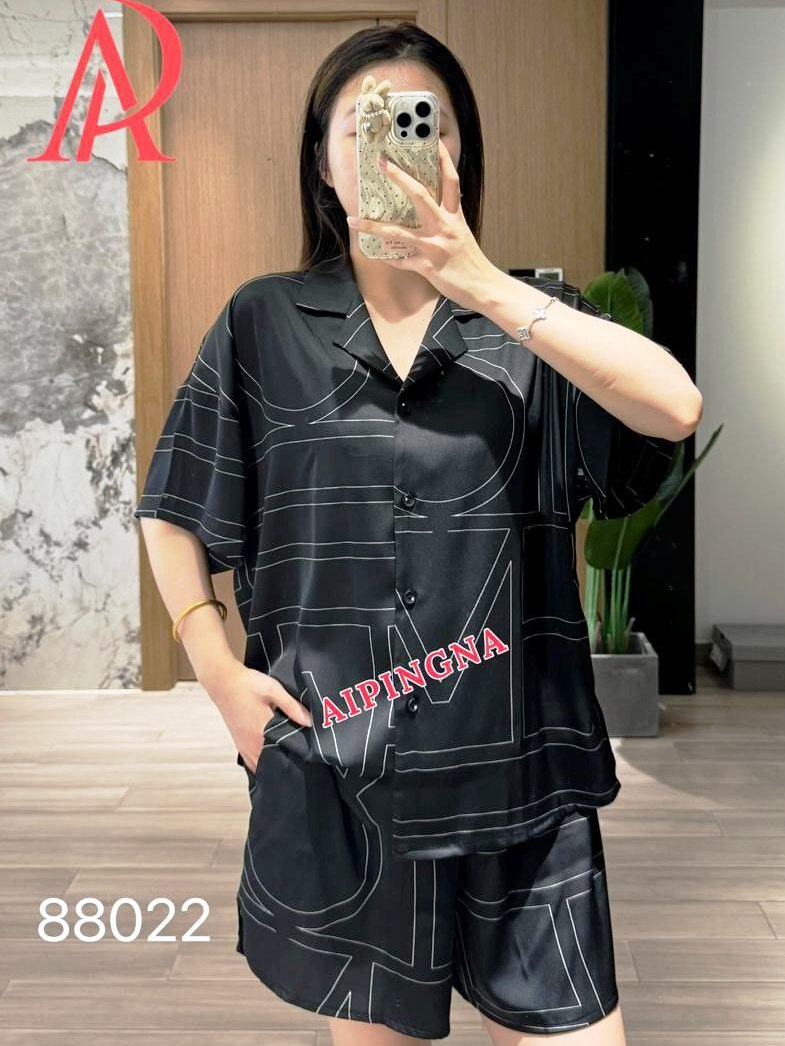 Пижама шелк с шортами AIPINGNA 88022 (черная геометрия)