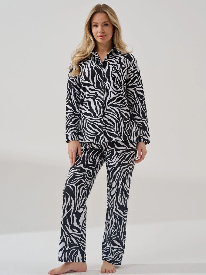 Пижама женская "Энимал" (классическая) (черно-белый)
