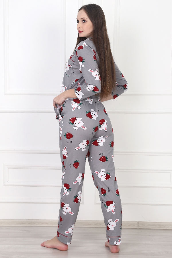 Пижама женская "Клубничный зайка" (классическая) Артикул: 1828-К (серая)